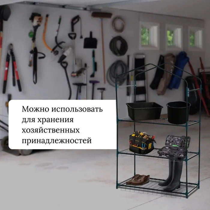 Используйте стеллаж для размещения комнатных растений, выращивания рассады или хранения садовых инструментов и аксессуаров. Это многофункциональное решение для любого садовода, стремящегося к порядку и удобству.