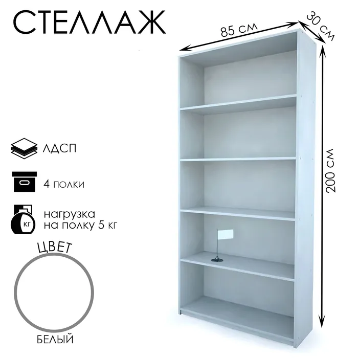 Стеллаж из ЛДСП, 85×30×200 см, цвет белый — Характеристики
