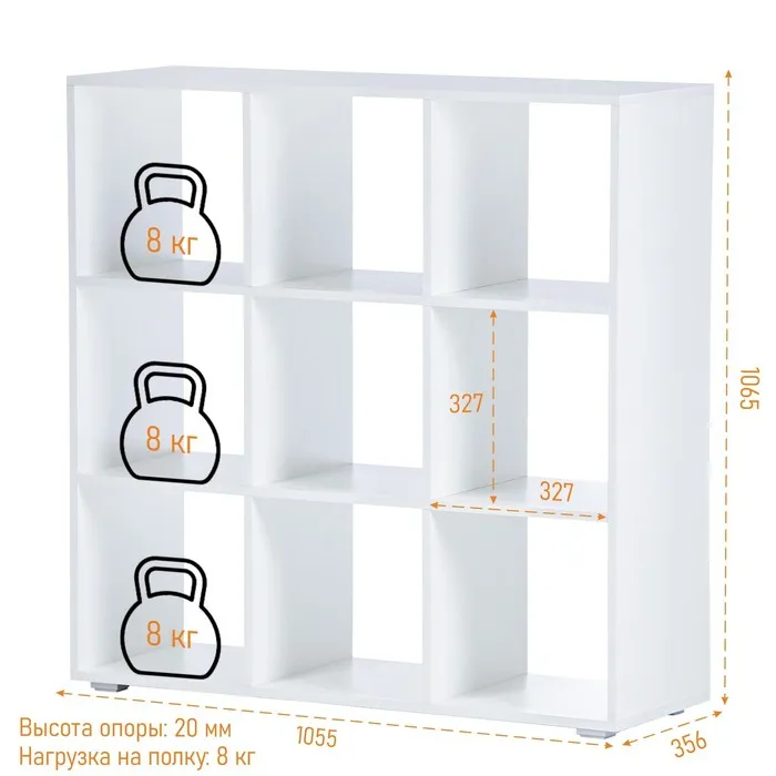 Стеллаж «Клик Мебель» №5, 1055×356×1065 мм, цвет белый — Характеристики