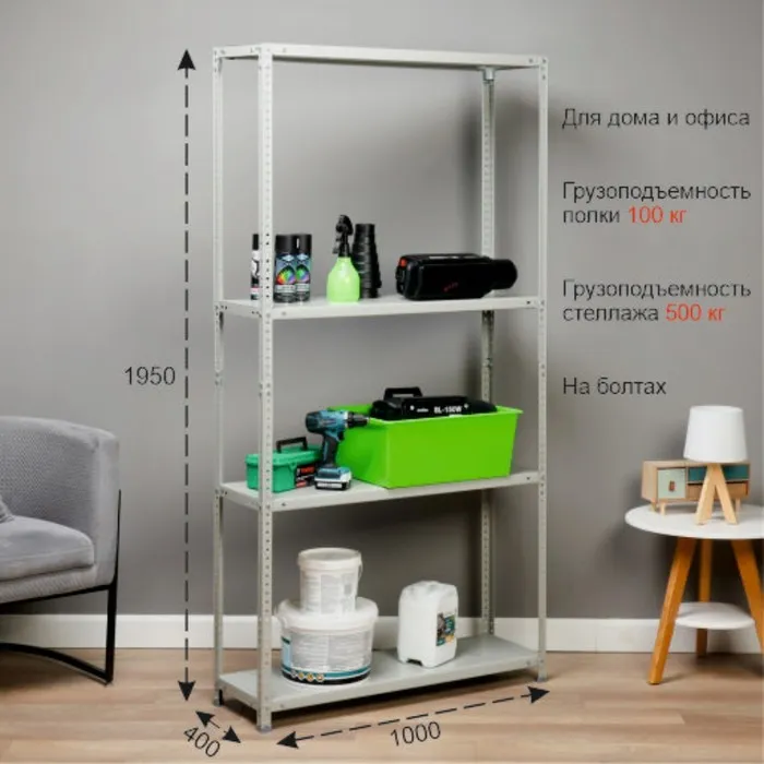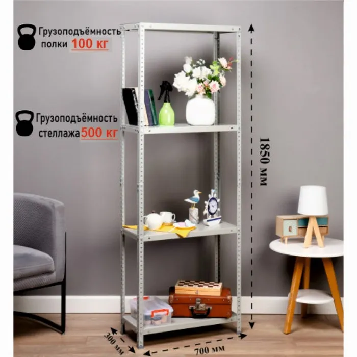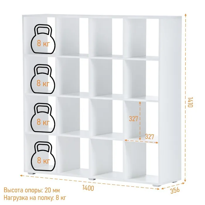 Стеллаж «Клик Мебель» С-2, 1400×356×1410 мм, цвет белый — Характеристики