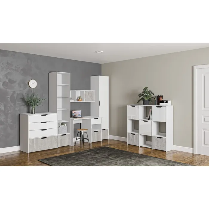Стеллаж Мико 3 секции – минималистичная модель в скандинавском стиле, которая имеет классическое решение для хранения всего необходимого. Эта функциональная модель, оснащена открытыми полочками, ящиками с дверцами и выдвижными ящиками. Такой стеллаж, предоставляет возможность хранить множество вещей и дополнить интерьер стильным декором, на открытых нишах, создавая красивый и уютный уголок.
