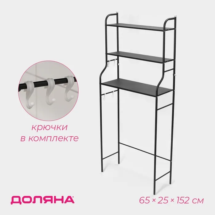 Стеллаж над стиральной машинкой, 65×25×152 см, чёрный — Характеристики