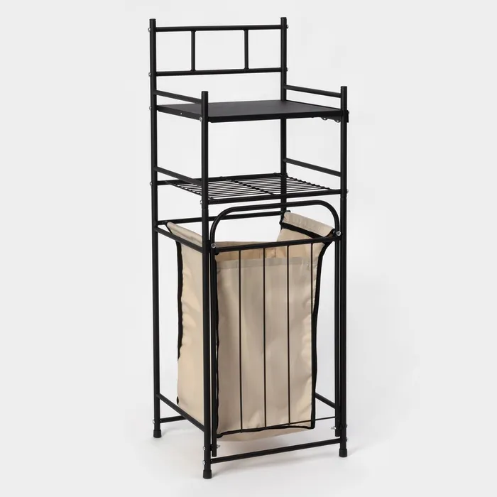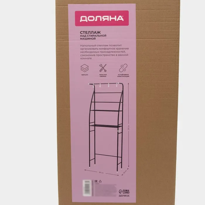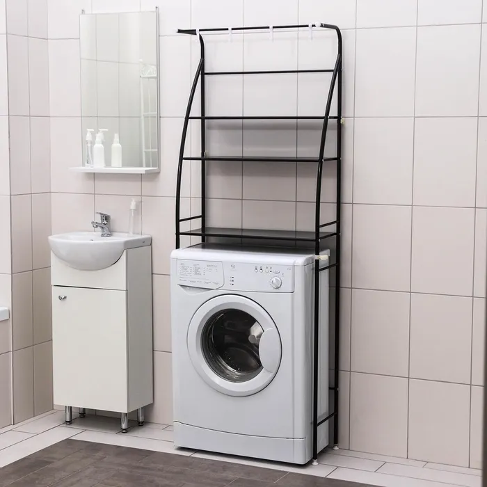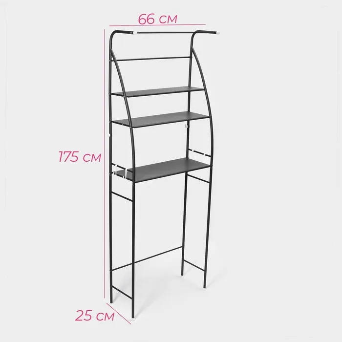 Стеллаж над стиральной машинкой со штангой для сушки, 66×25×175 см, чёрный — Характеристики