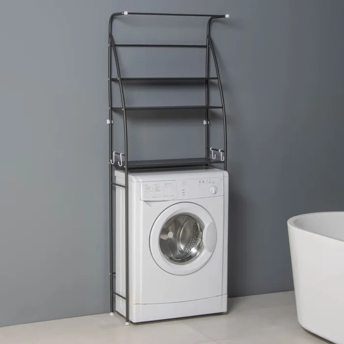 Как разместить всё необходимое в небольшой ванной? Металлическая стойка поможет расположить всё необходимое. Благодаря удобной конструкции можно рационально использовать свободное пространство над унитазом или стиральной машинкой. На стеллаже можно с лёгкостью разместить полотенца, бытовую химию и средства гигиены. Практичный и функциональный, стеллаж дополнит любой интерьер.