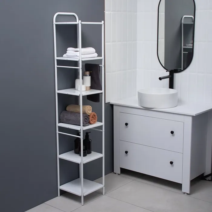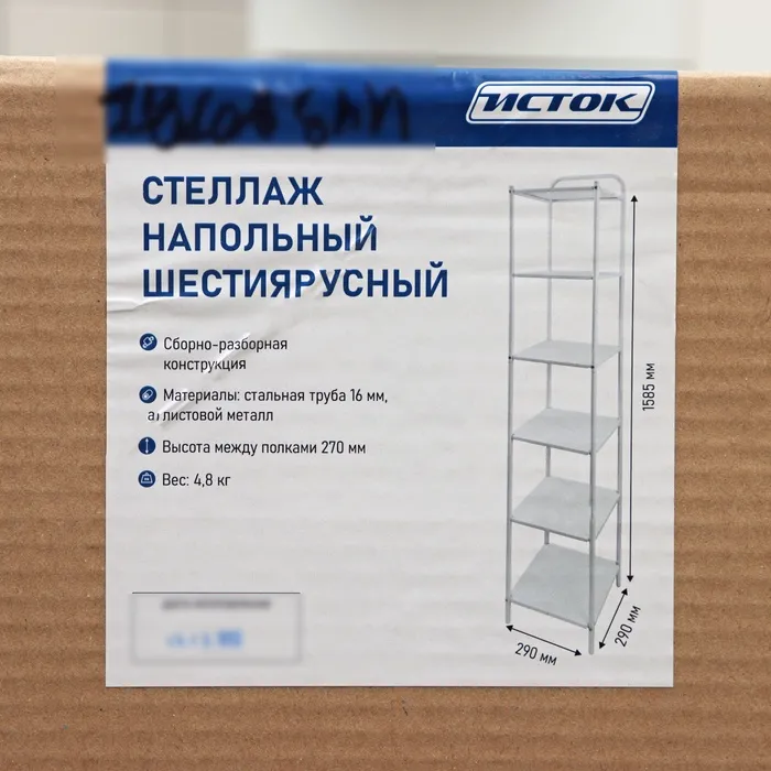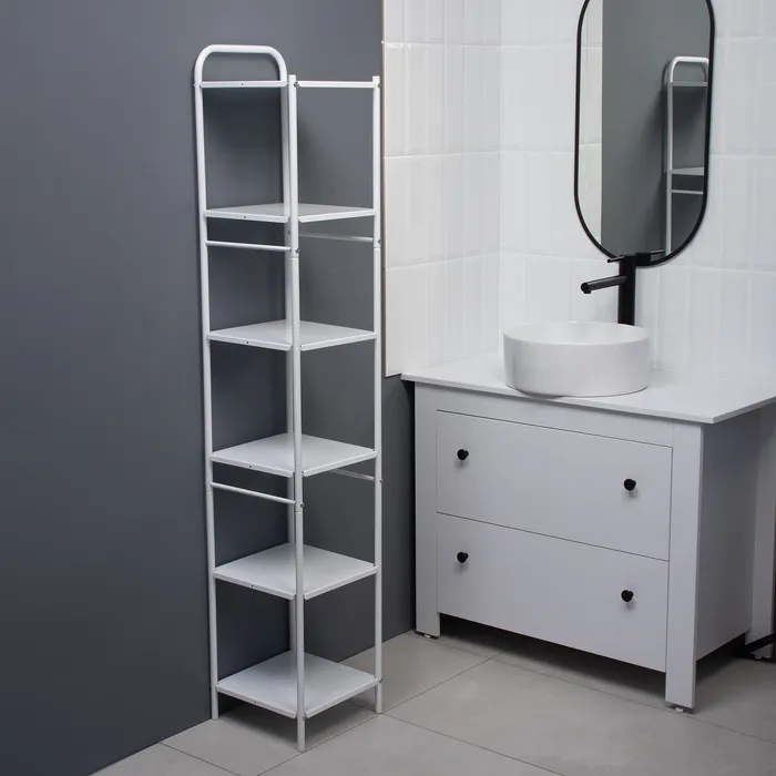 Стеллаж напольный шестиярусный, 29×29×158,5 см, цвет белый — Характеристики