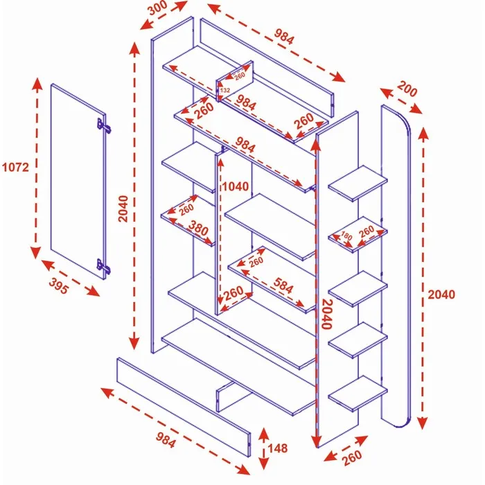 Стеллаж-перегородка для зонирования «Студия», с полками, 1200×300×2040, цвет шимо тёмный/шимо светлый — Характеристики