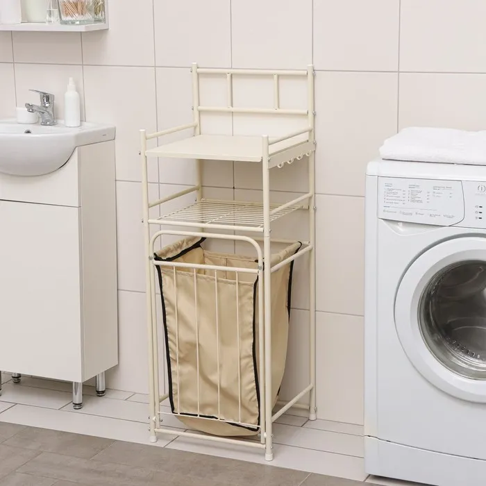 Стеллаж с корзиной для белья станет прекрасным дополнением вашего интерьера и поможет эргономично организовать пространство.