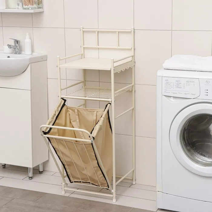 Стеллаж с корзиной для белья 2-х ярусный, 38×35×105 см, бежевый — Характеристики