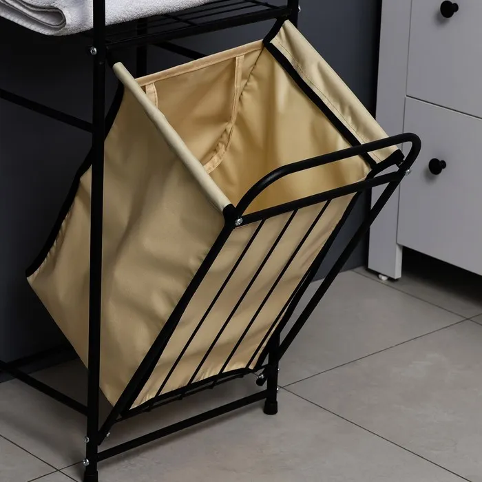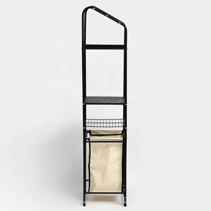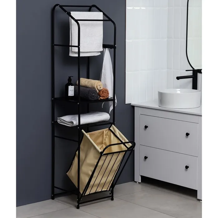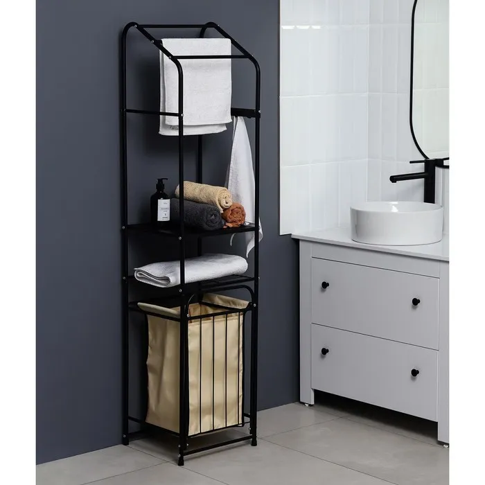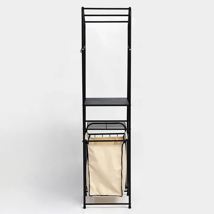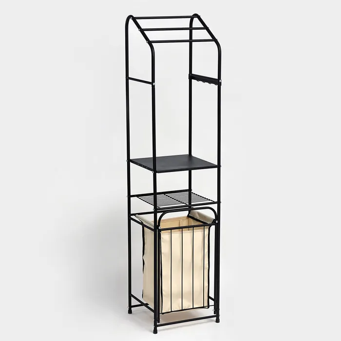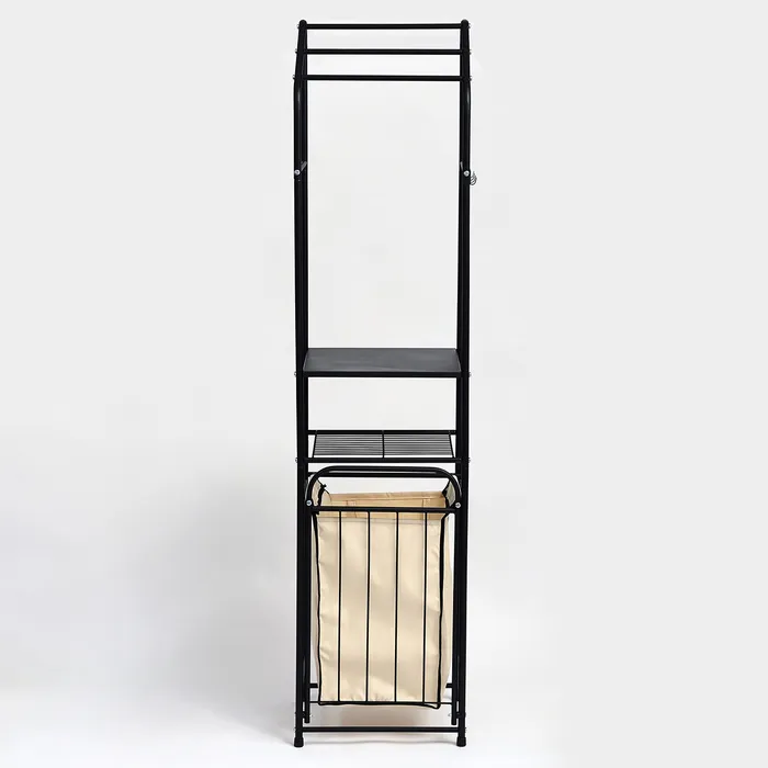 Стеллаж с корзиной для белья и перекладинами, 2-х ярусный, 38×35×160 см, чёрный — Характеристики