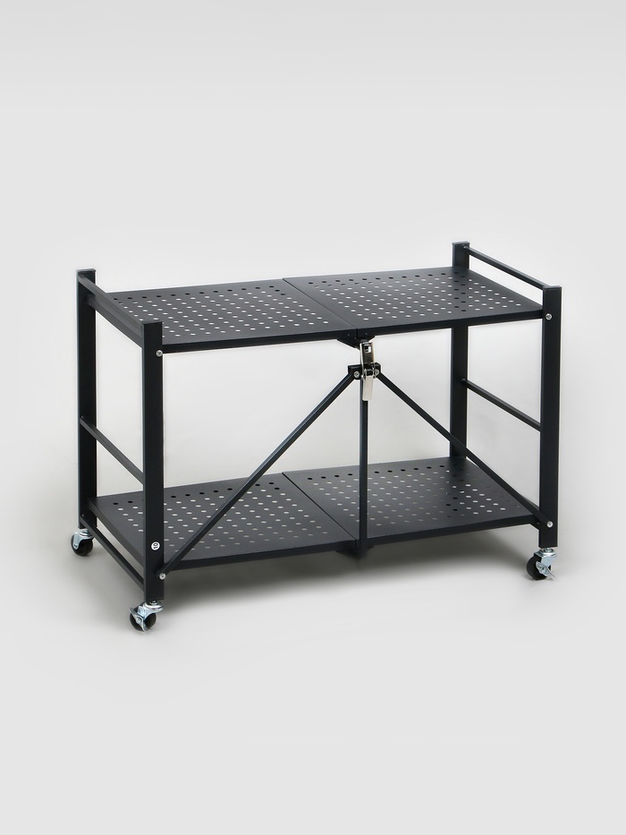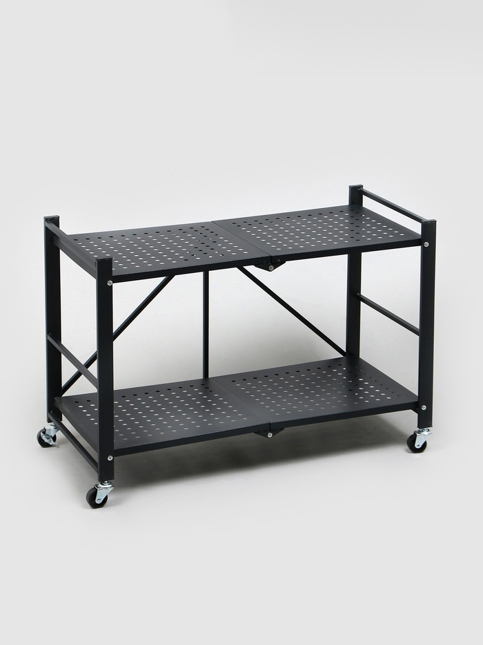 Складной стеллаж на колесах с двумя полками (размер 71,5×34×55 см) — это компактное и стильное решение для удобного хранения и демонстрации вещей. Выполненный в матовом черном цвете, он прекрасно впишется в любой интерьер, добавляя современный акцент и уют. Колеса обеспечивают легкую мобильность, позволяя перемещать стеллаж по необходимости. Благодаря складной конструкции, его можно удобно хранить, когда он не используется. Идеален для дома, офиса или торгового пространства, создавая организованное и привлекательное пространство для демонстрации декора, книг или других предметов.