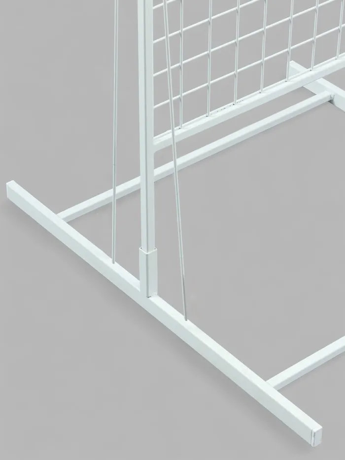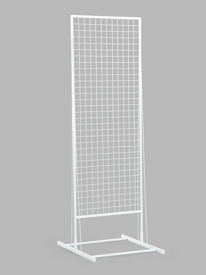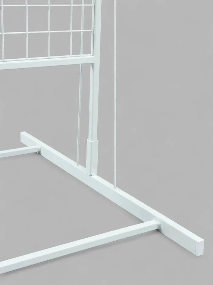 Двухсторонний стенд предназначен для размещения продукции преимущественно в центральной части торгового или выставочного помещения. С помощью прямого соединителя стенды размером 1 860 × 630 составляются в линию любой протяжённости. Стенд имеет две рабочие поверхности, к которым крепятся полки, крючки и другие навесные элементы.