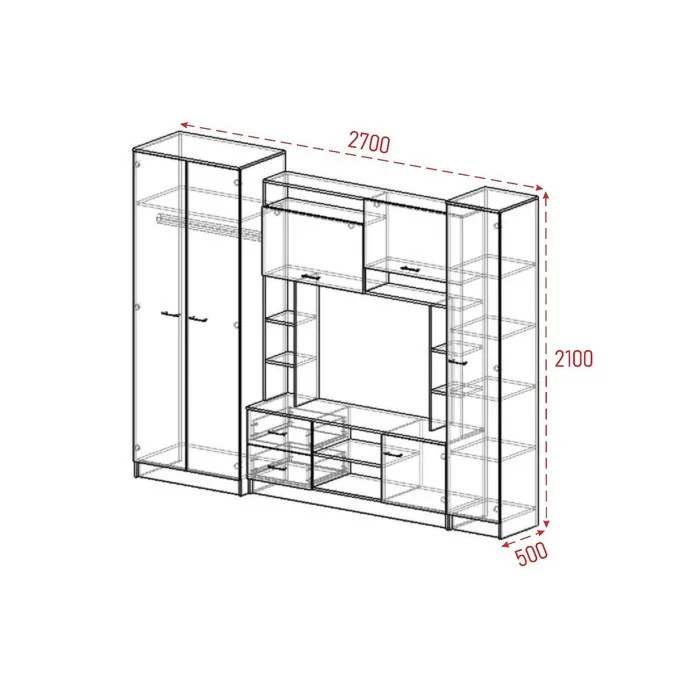 Стенка для гостиной «МАРТА-11», 2700×500×2100 мм, цвет белый — Характеристики