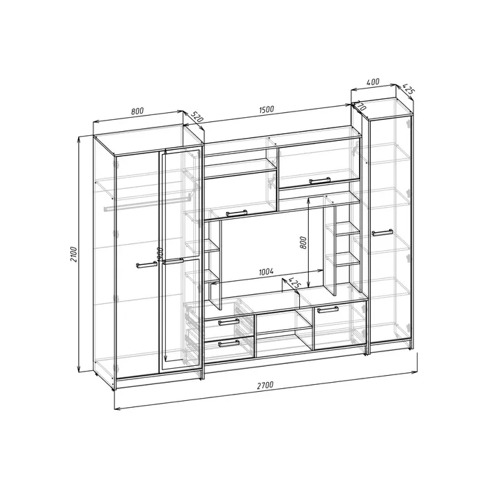 Стенка для гостиной «МАРТА», 2700×500×2100 мм, цвет серый графит — Характеристики