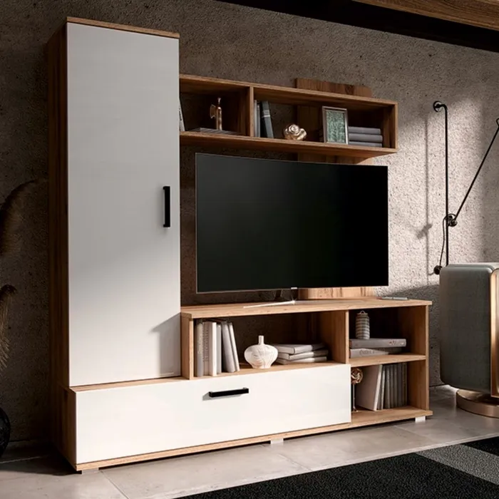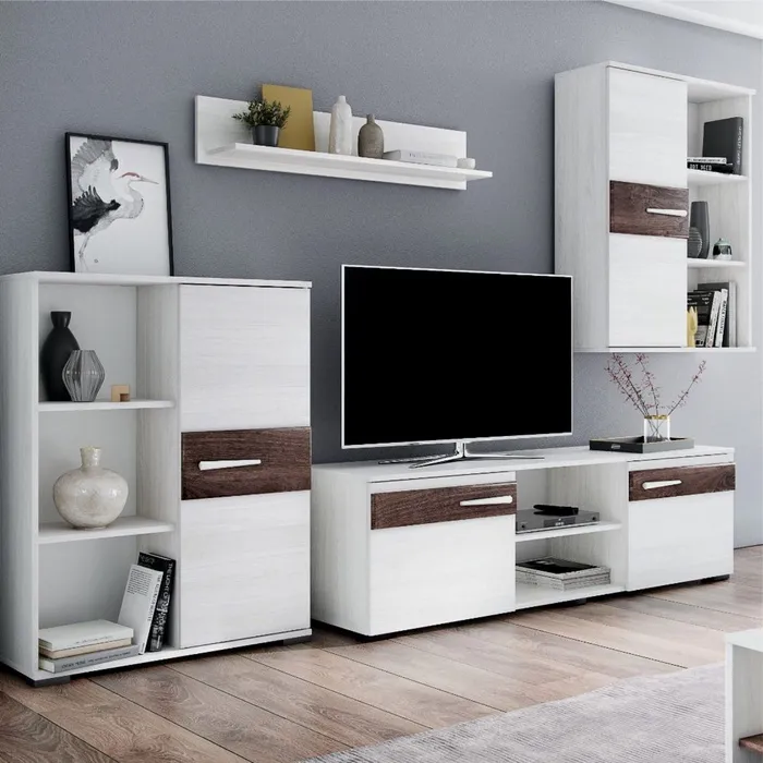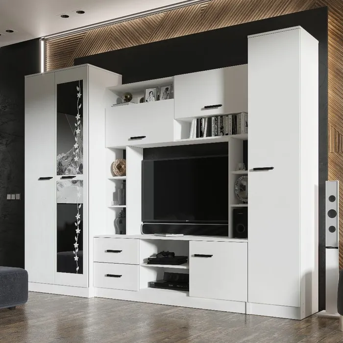 Стенка Oskar - это функциональное решение для вашего дома. Сочетает в себе удобство и практичность, обеспечивая комфорт и уют. Материал - ЛДСП гарантирует прочность и долговечность конструкции. Особенностью данной модели является наличие вместительных открытых и закрытых ниш для хранения книг, вещей и предметов. Это позволяет сэкономить пространство в комнате и удобно разместить все необходимое по своим местам.