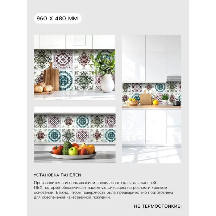 Стеновая панель ПВХ Grace «Кавказ», гранёный квадрат, 960×480 мм, цвет красный/зелёный — Характеристики