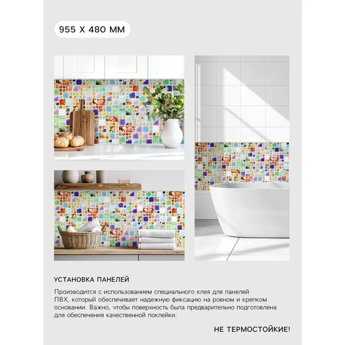 Стеновая панель ПВХ Grace «Мозаика «Лагуна», 955×480 мм, цвет разноцветный — Характеристики