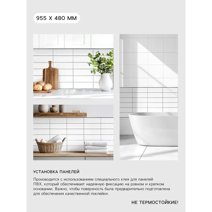 Стеновая панель ПВХ «Плитка», 957×482 мм, цвет белый/чёрный шов — Характеристики