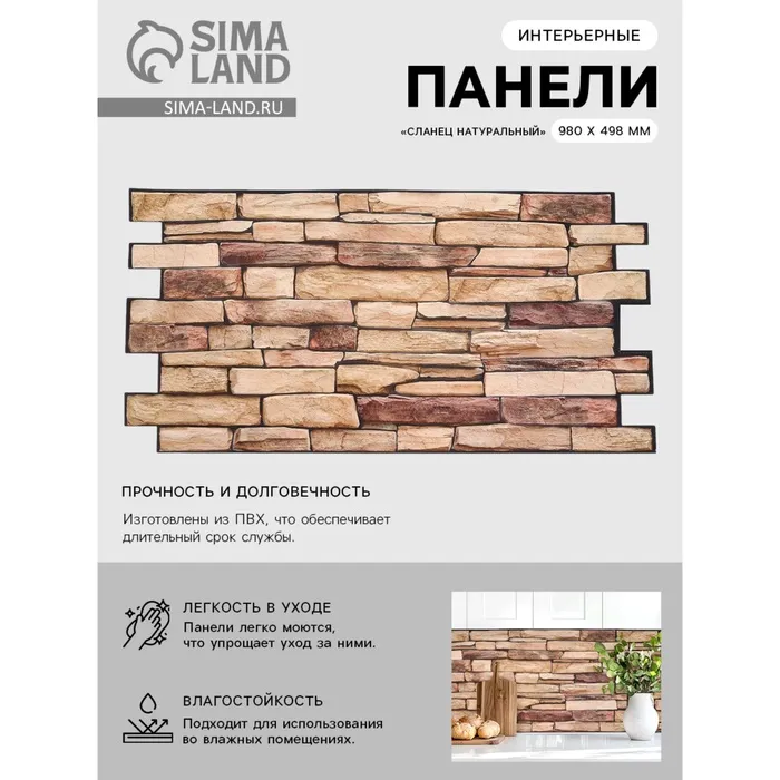Стеновая панель ПВХ «Сланец натуральный», 966×484 мм, цвет коричневый — Характеристики