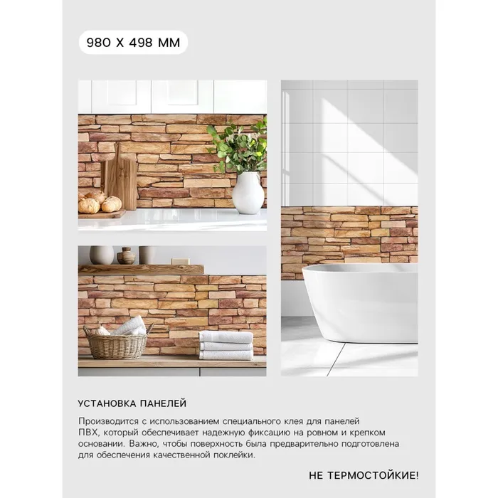 Стеновая панель ПВХ «Сланец песочный», 980×498 мм, цвет коричневый — Характеристики