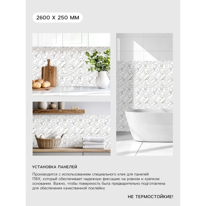 - Влагостойкость: панели устойчивы к воздействию влаги, их можно успешно применять в кухнях и ванных комнатах.
