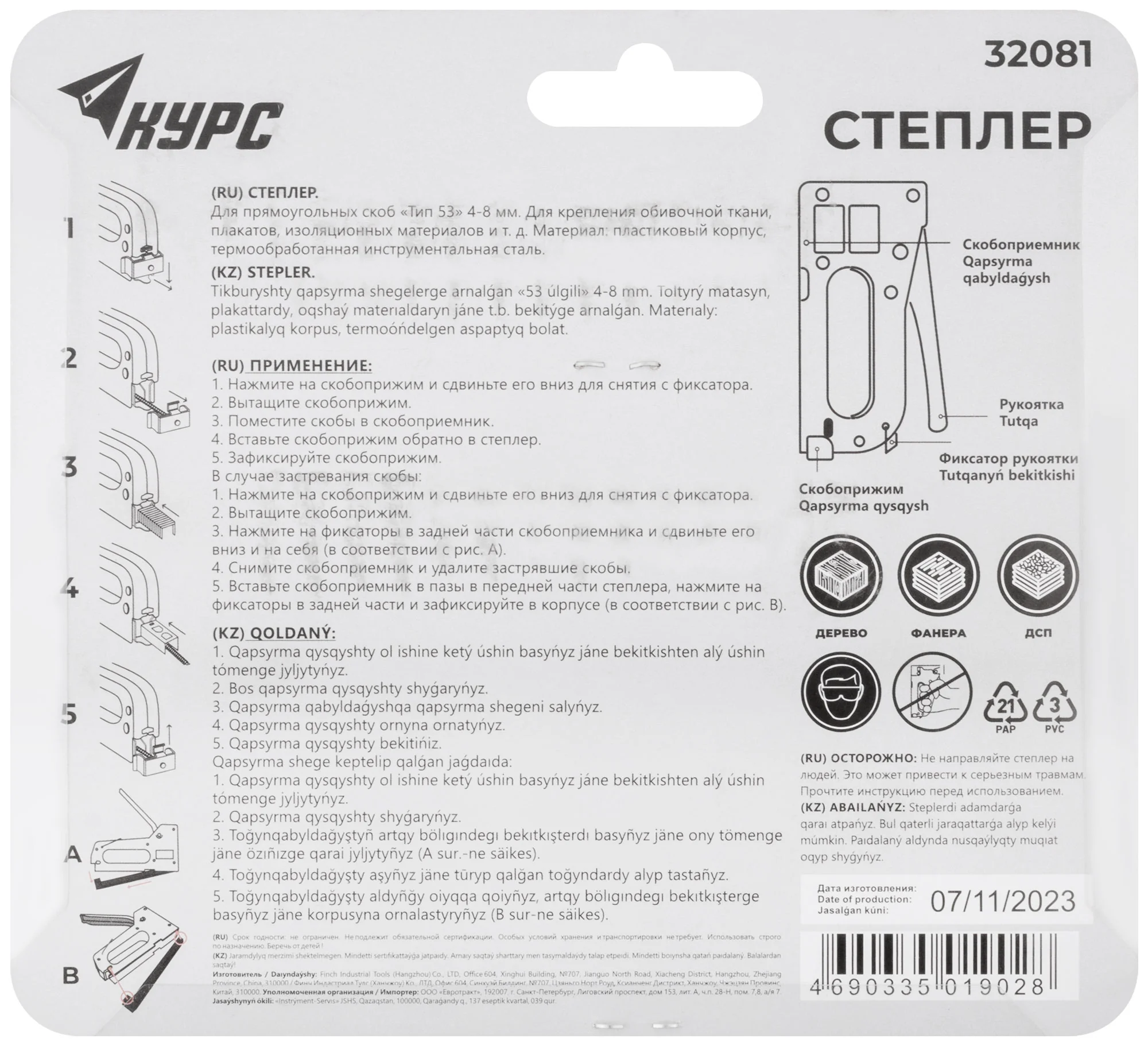 Выберите степлер КУРС 32081 для быстрого и надежного крепления в любых условиях, чтобы сделать вашу работу более эффективной и комфортной.