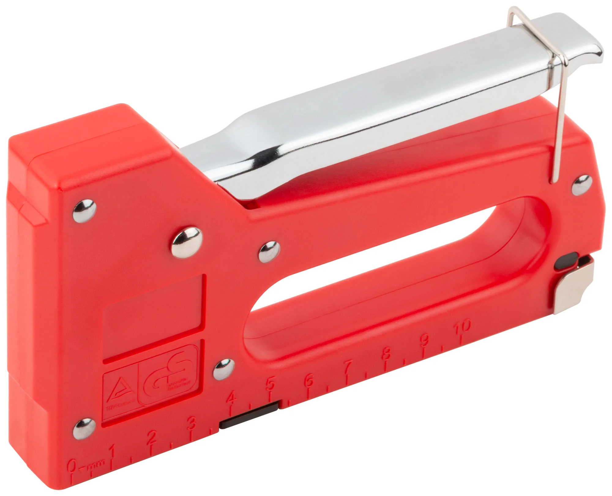 Этот степлер рассчитан на использование со скобами типа 53 размером 4-8 мм. Прочный пластиковый корпус обеспечивает долговечность и надежность в эксплуатации, а его малый вес — всего 180 г — позволяет работать без усталости длительное время.