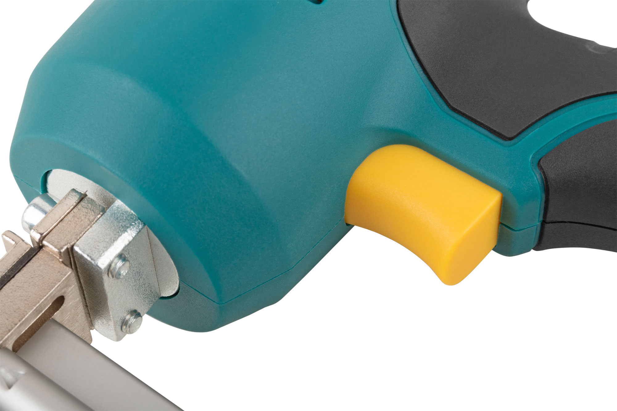 Корпус степлера оборудован резиновыми накладками, которые обеспечивают комфорт и надежность в работе. Встроенная электронная регулировка силы удара позволяет адаптировать инструмент под различные задачи. Низкий уровень отдачи обеспечивает точность и безопасность при длительном использовании.