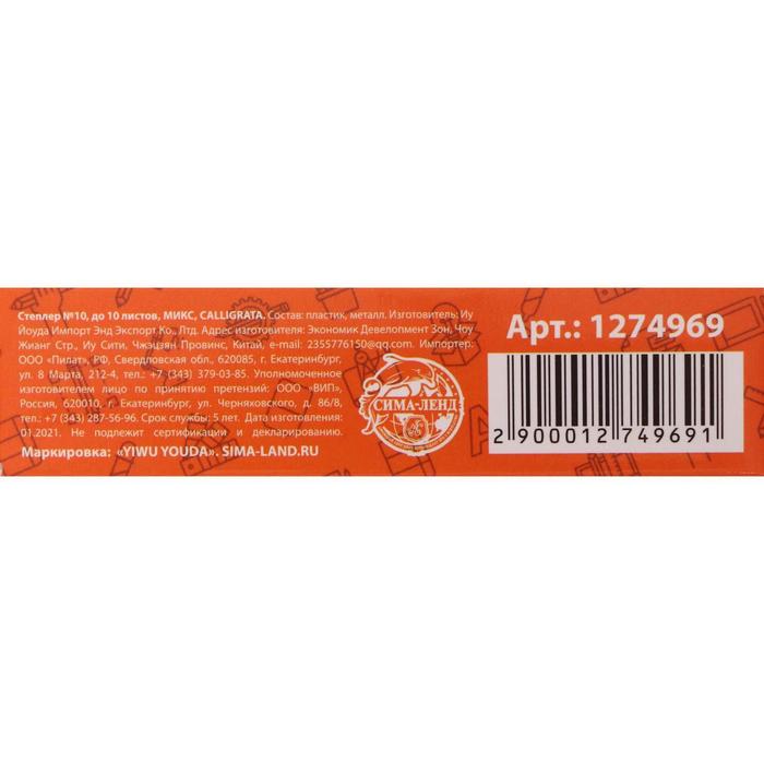 Степлер CALLIGRATA - это надежный и функциональный офисный инструмент, предназначенный для скрепления документов. С его помощью вы сможете легко и быстро скрепить до 10 листов бумаги, что делает его идеальным решением для повседневной работы в офисе или дома