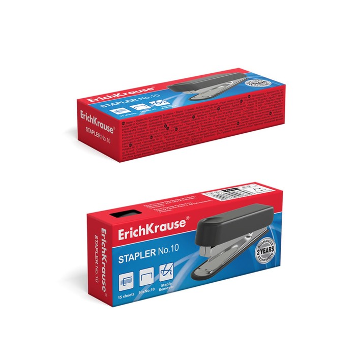 Степлер со встроенным антистеплером изготовлен из ударопрочного пластика с высококачественным стальным механизмом. Вмещает до 50 скоб №10. Пробивает до 15 листов. Глубина закладки бумаги до 51 мм. Гарантия на механизм 2 года при условии использования скоб ErichKrause®.