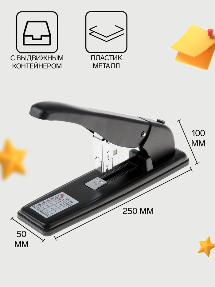 Этот степлер сочетает в себе мощность и практичность. Он легко справляется с большим количеством листов, а выдвижной контейнер делает его использование ещё более удобным. Прочная конструкция гарантирует, что инструмент прослужит долго даже при интенсивной эксплуатации. Подходит для офиса, дома или учебных заведений.
