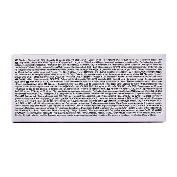 - Вмещает до 90 скоб №24/6 и до 110 скоб №26/6.