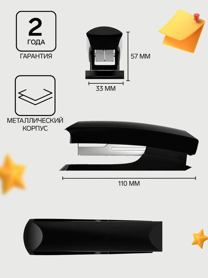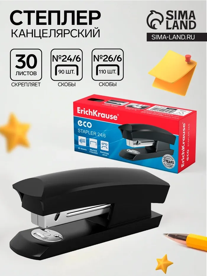 Степлер канцелярский № 24/6, 26/6, ErichKrause ECO, металлический корпус, до 30 листов, чёрный — Характеристики