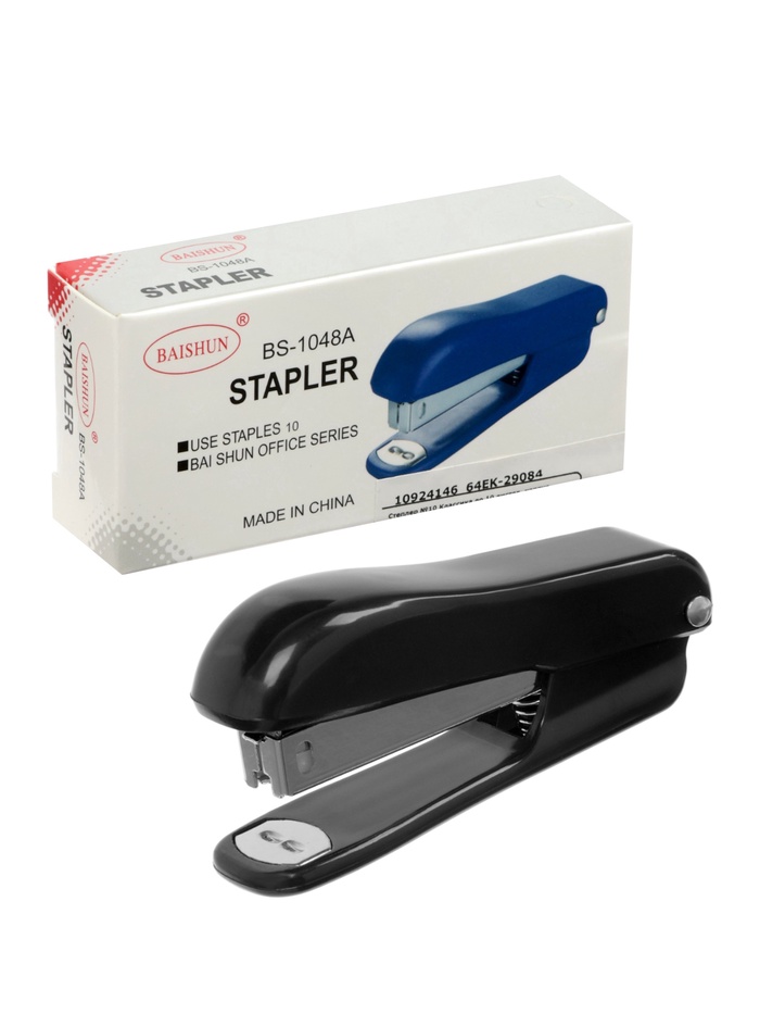 Соберите документы быстро и аккуратно. Этот чёрный степлер легко справляется со стопкой бумаг, заменяя гору скрепок одной уверенной скобой. Классический дизайн делает его универсальным помощником для офиса или домашнего кабинета.