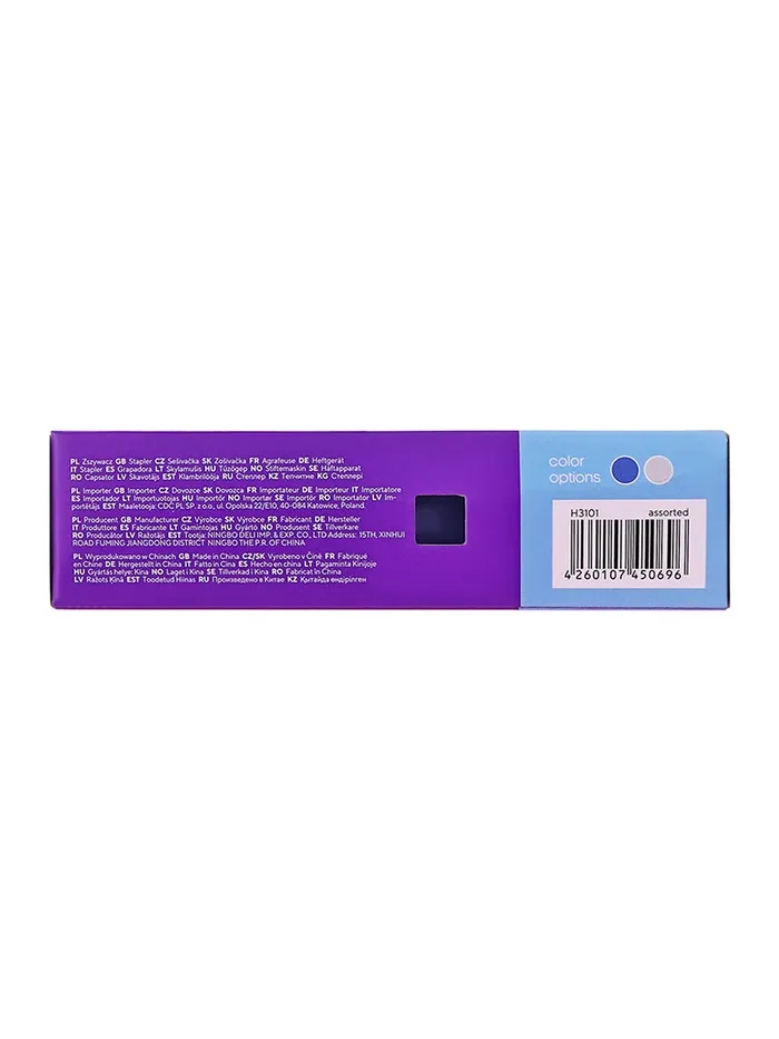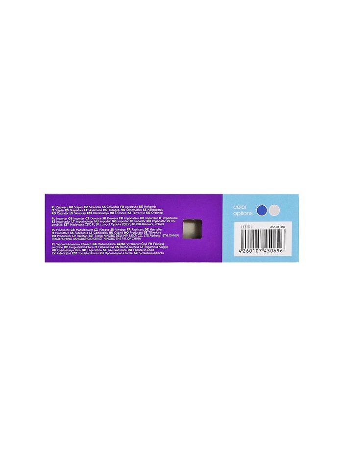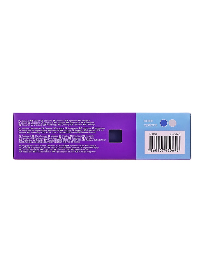 Корпус - пластик, механизм из металла. Эргономичная форма. Антискользящие верхняя накладка и основание. Вмещает 100 скоб №24/6, 26/6, 2 типа скрепления. Сшивает до 30 листов. Глубина захвата - 50 мм. Цвета в ассортименте.