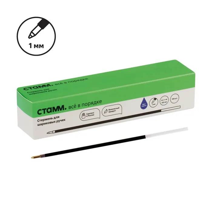 Стержень шариковый «Стамм», 1.0 мм, длина 152 мм, чернила синие (цена за 1 шт.) — Характеристики