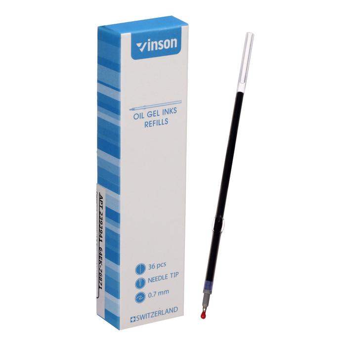 Стержень шариковый Vinson, синие чернила, с ушками для автоматических ручек, на масляной основе, 107 мм, диаметр пишущего узла 0.7 мм — Характеристики