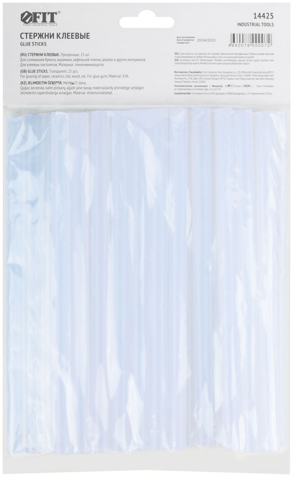 - 25 клеевых стержней в полиэтиленовом пакете с картонным подвесом.