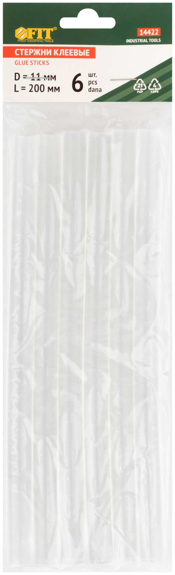 Стержни клеевые бесцветные 11х200 мм, 6 шт. для универсального склеивания