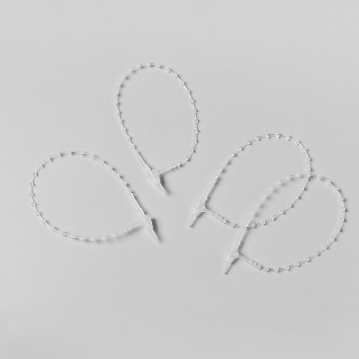 Стяжка пластиковая с шариками, длина 13 см, цвет прозрачный, (набор 1000 шт.). Подходит для крепления бирок и этикеток, а также для декоративного использования.