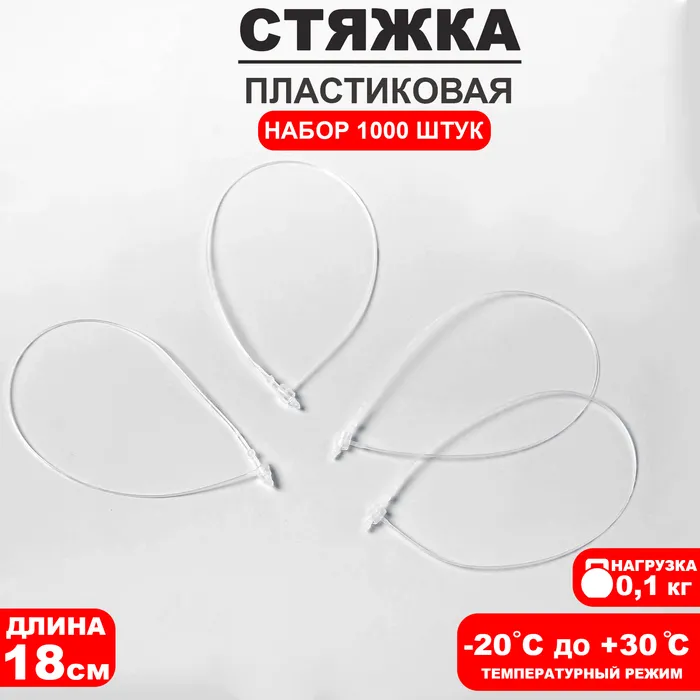 Изготовленные из прочного пластика, эти стяжки обеспечивают надежное крепление и долговечность. Прозрачный цвет делает их универсальными для любых задач, не нарушая гармонии вашего пространства. Длина 18 см идеально подходит для работы с проводами, упаковкой и организованным хранением.