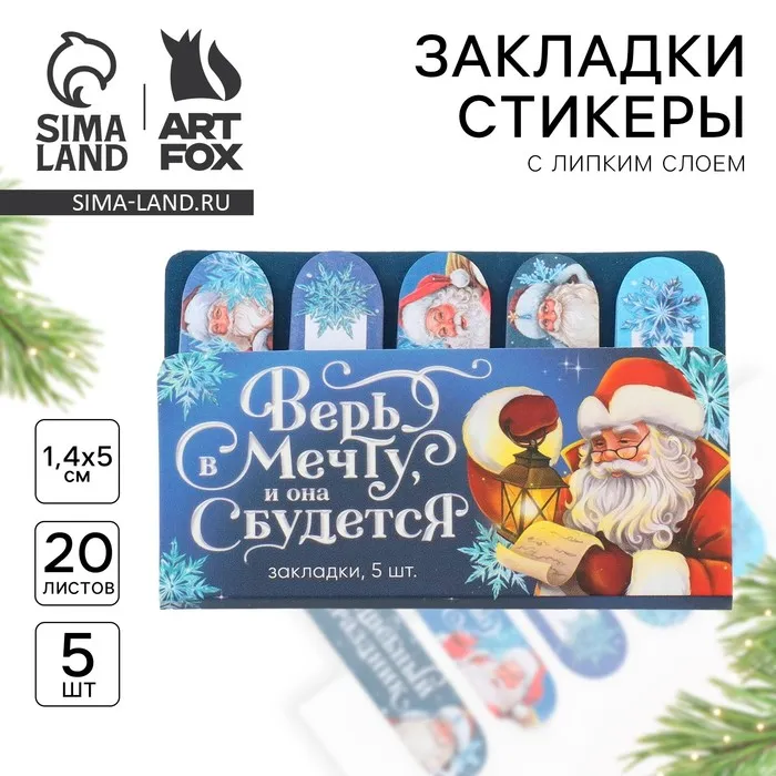 Стикеры для заметок, с липким краем, 20 листов, 5 шт., на подложке «Новый год: Верь в мечту» — Характеристики