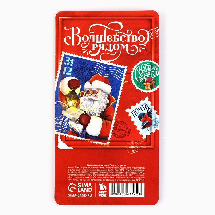 Стикеры для заметок, с липким краем, 30 листов, 5 шт. «Новогодняя почта. Волшебство рядом» — Характеристики