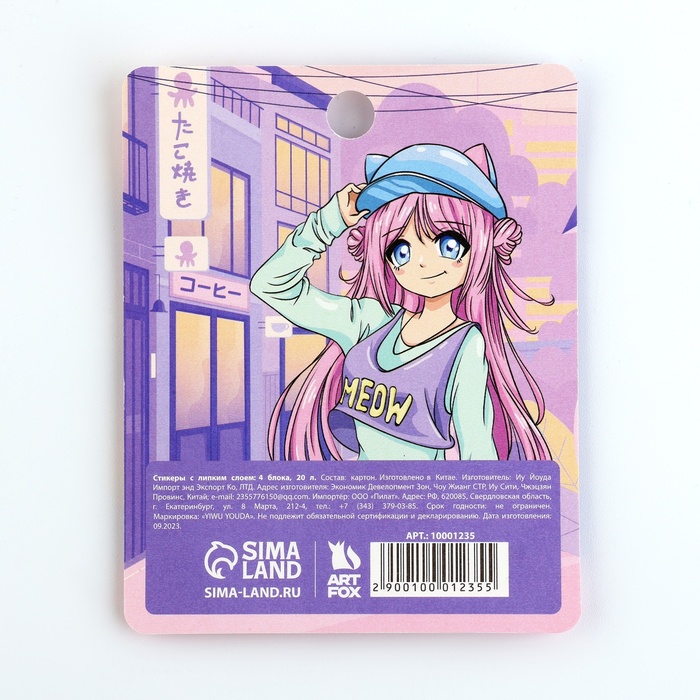 Стикеры с липким слоем 4 блока по 20 л «Аниме» — Характеристики