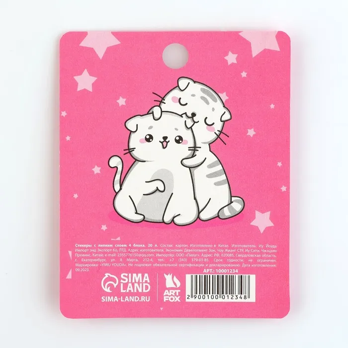 Стикеры с липким слоем 4 блока по 20 л «Котик» — Характеристики