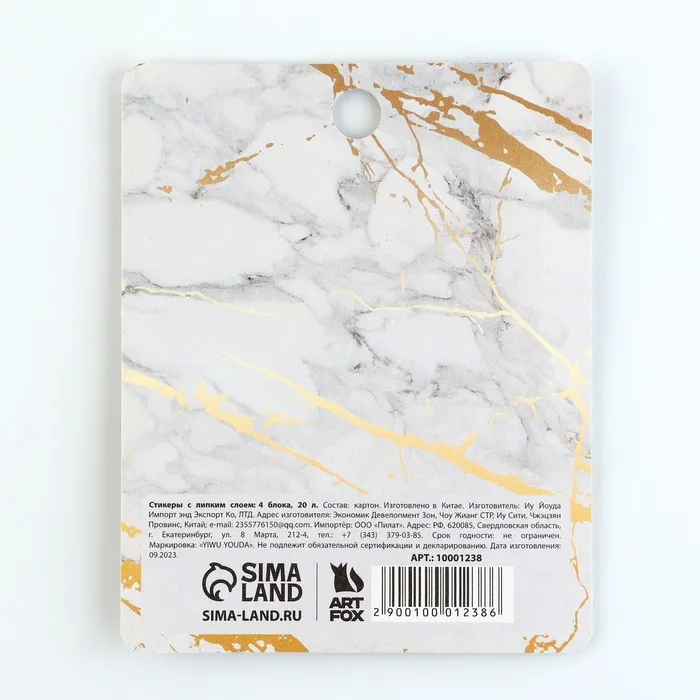 Стикеры с липким слоем 4 блока по 20 л «Мрамор» — Характеристики