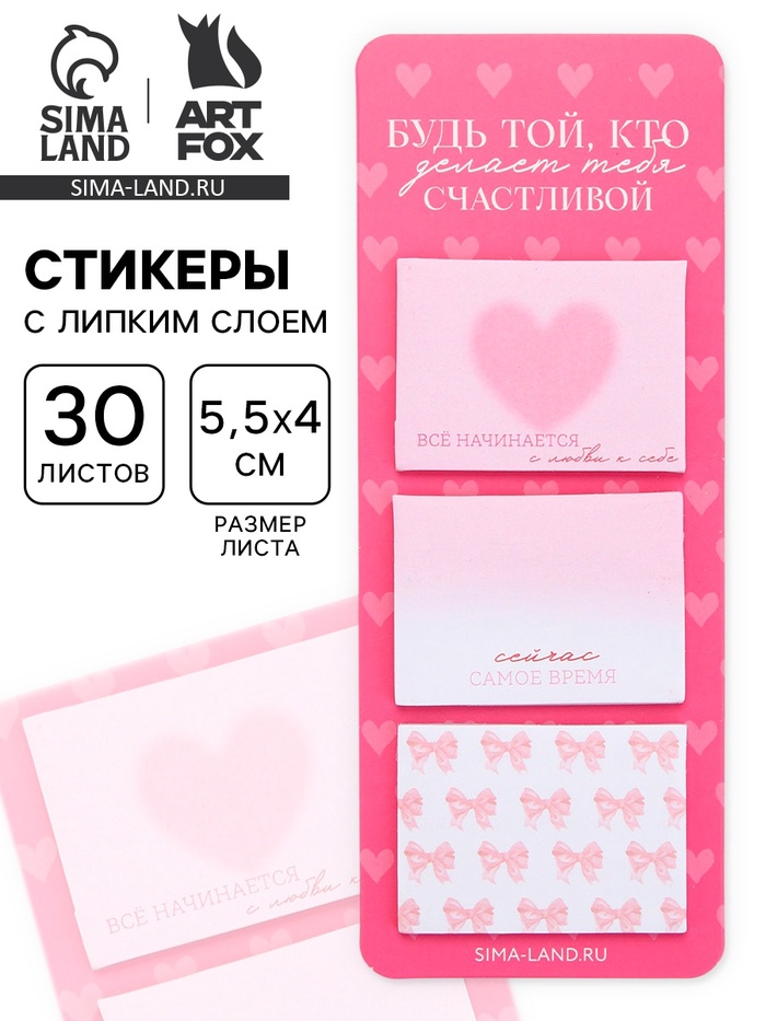Стикеры с липким слоем «Будь той, кто делает тебя счастливой», 3 шт., 30 л — Характеристики