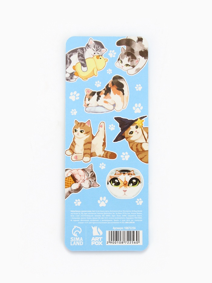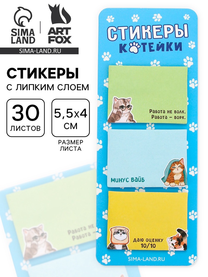 Стикеры с липким слоем «Котейки», 3 шт., 30 л — Характеристики