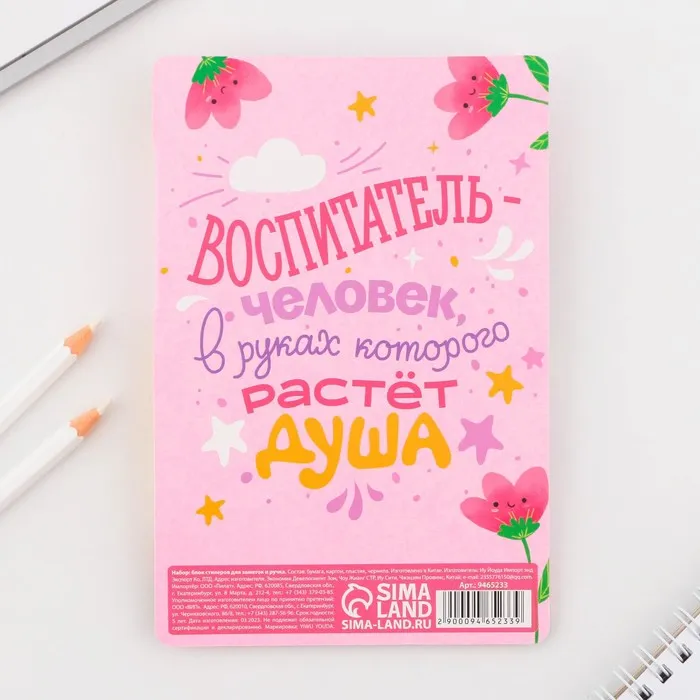 Стикеры с липким слоем, ручка синяя 0.7 мм, шариковая «Любимый воспитатель» 30 листов — Характеристики