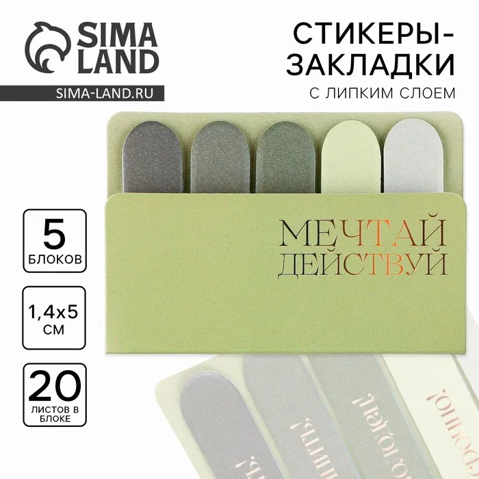 Стикеры закладки 5 шт., по 20 л. «Мечтай. Действуй» — Характеристики