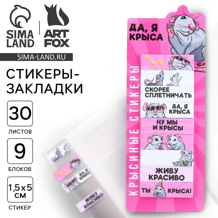 Стикеры закладки «Да, я крыса», 9 шт., 30 л — Характеристики